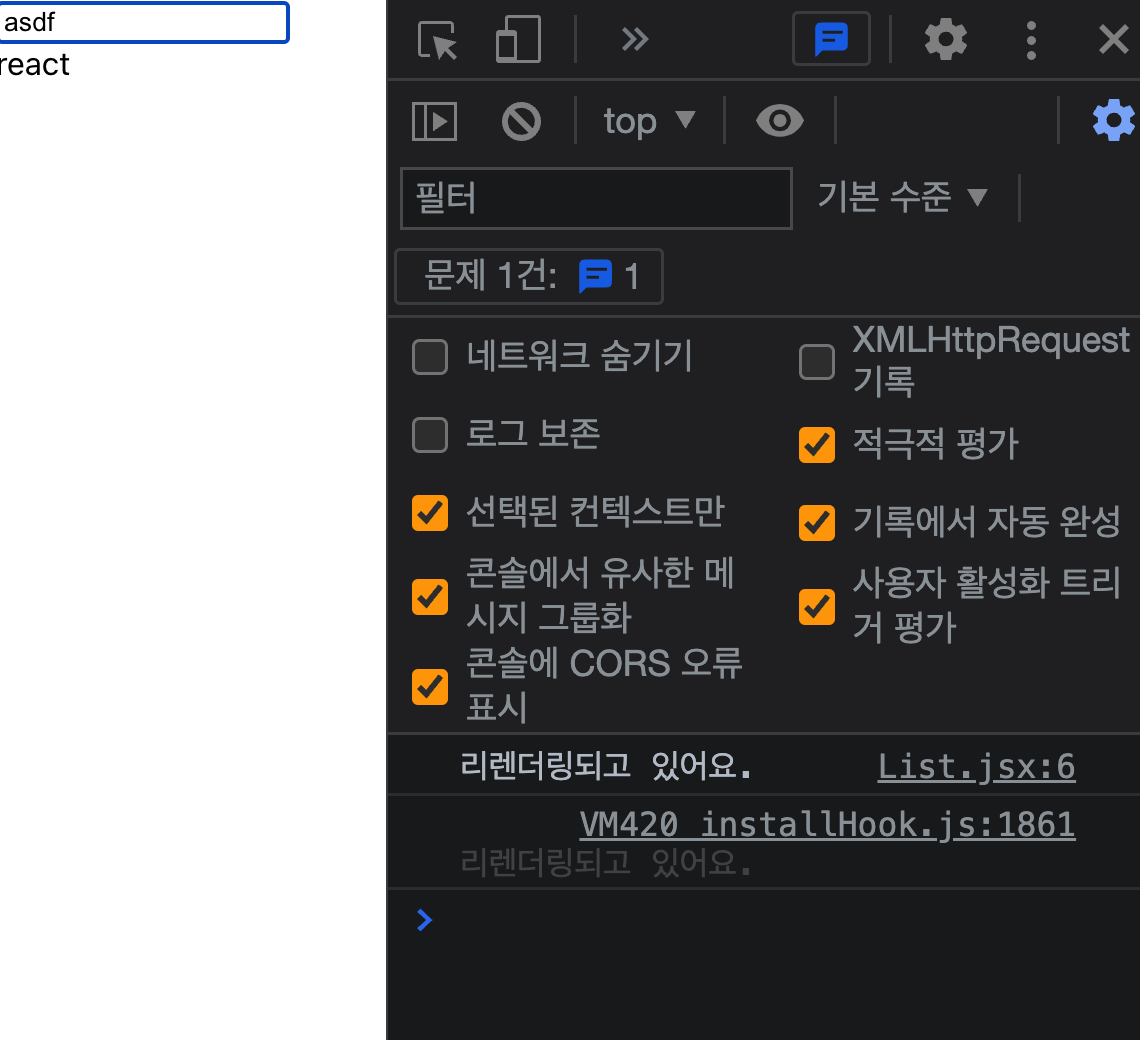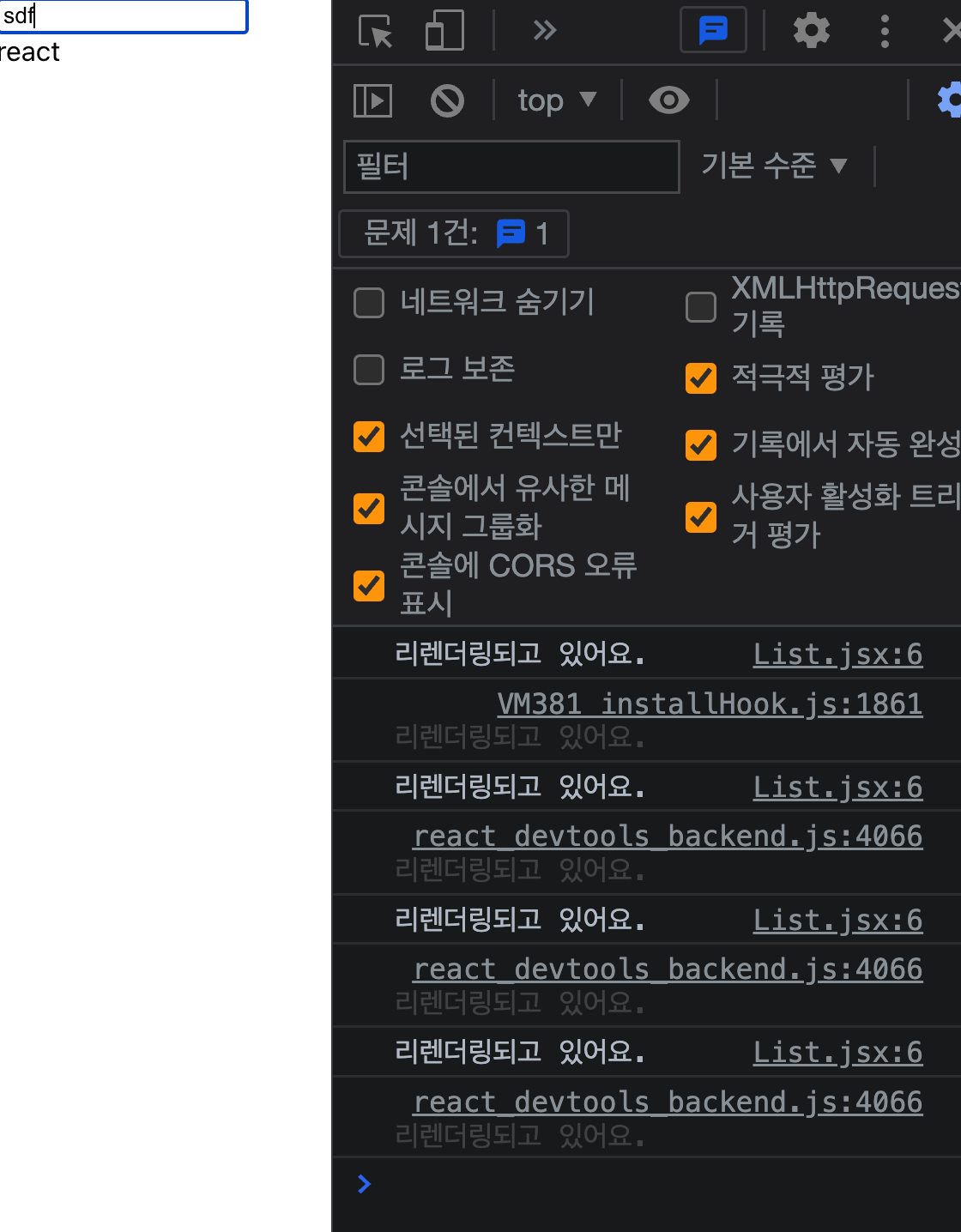 위 사진에서 보듯이, input의 value값에 한글자라도 변경이 일어나면 리렌더링 되는 것을 볼 수 있다.