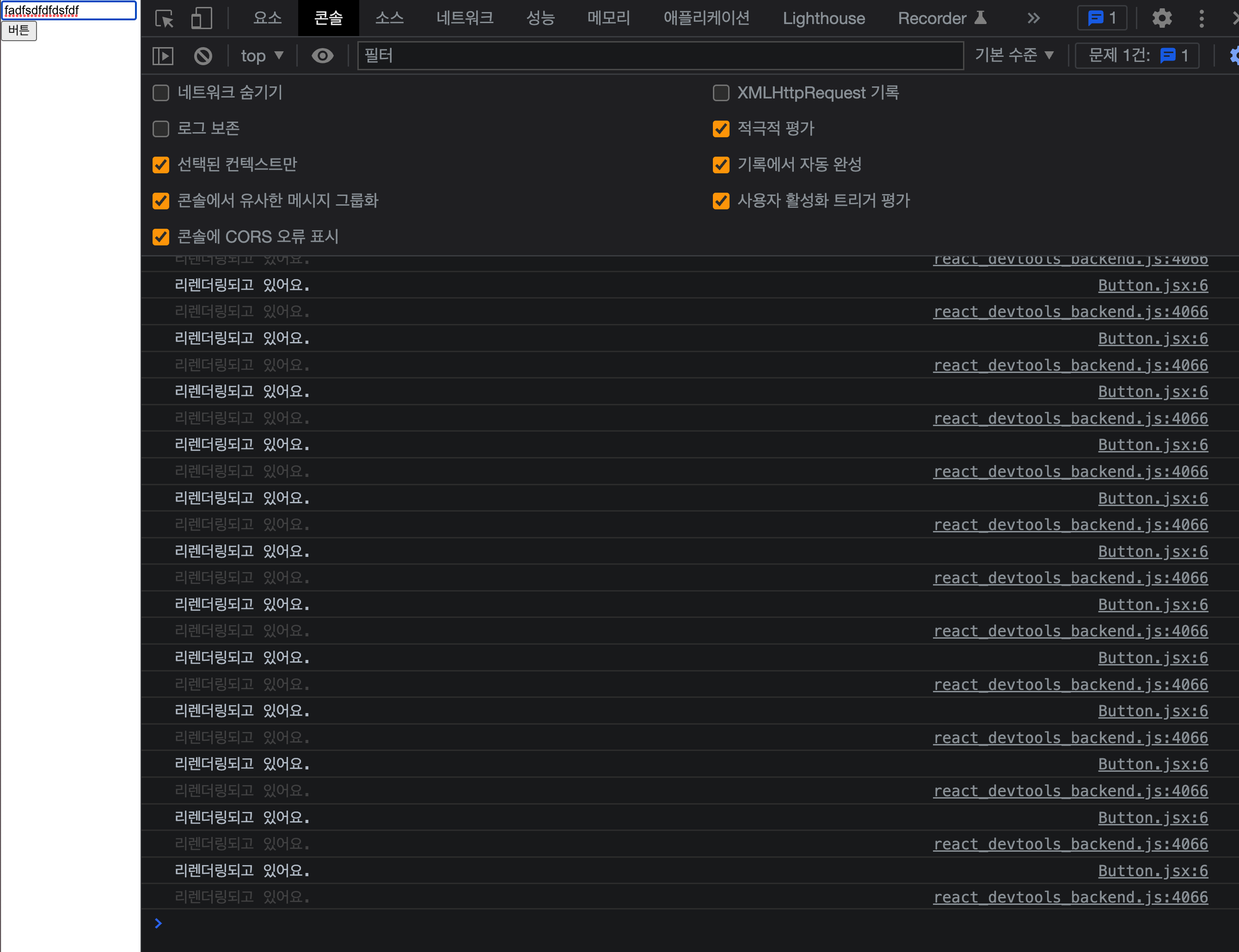 input은 App.js에 있지만 리렌더링이 일어나지 않아도 될 button.jsx까지 리렌더링이 되고있다.