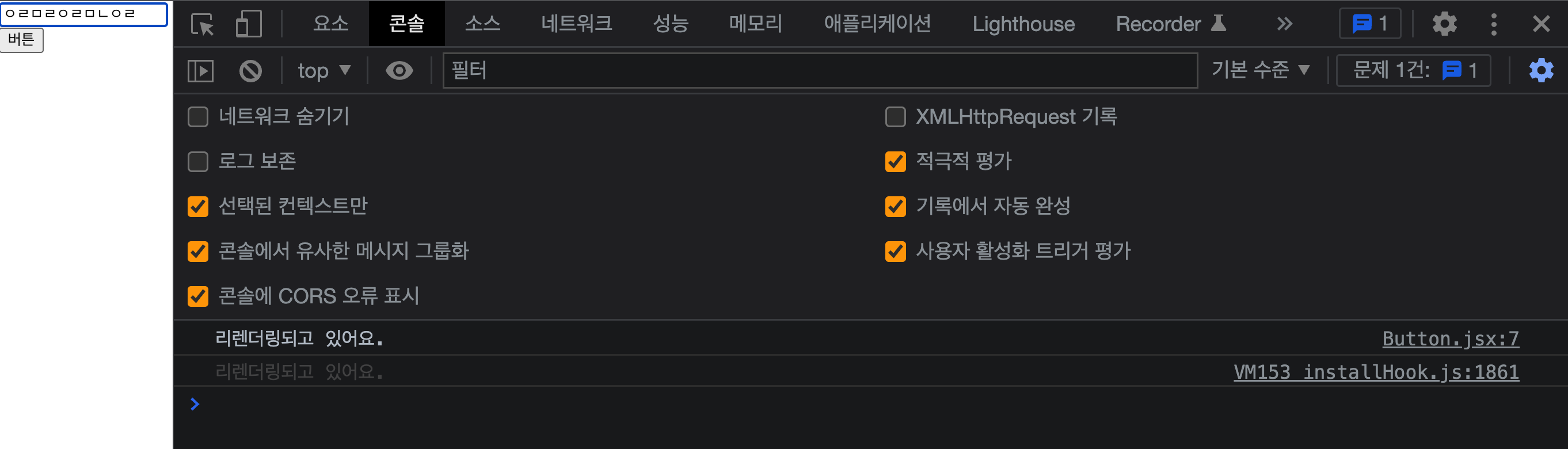 최초 한번만 렌더링 되고 그 뒤 input의 value값이 변경되어도 리렌더링이 일어나지 않는 것을 볼 수 있다.