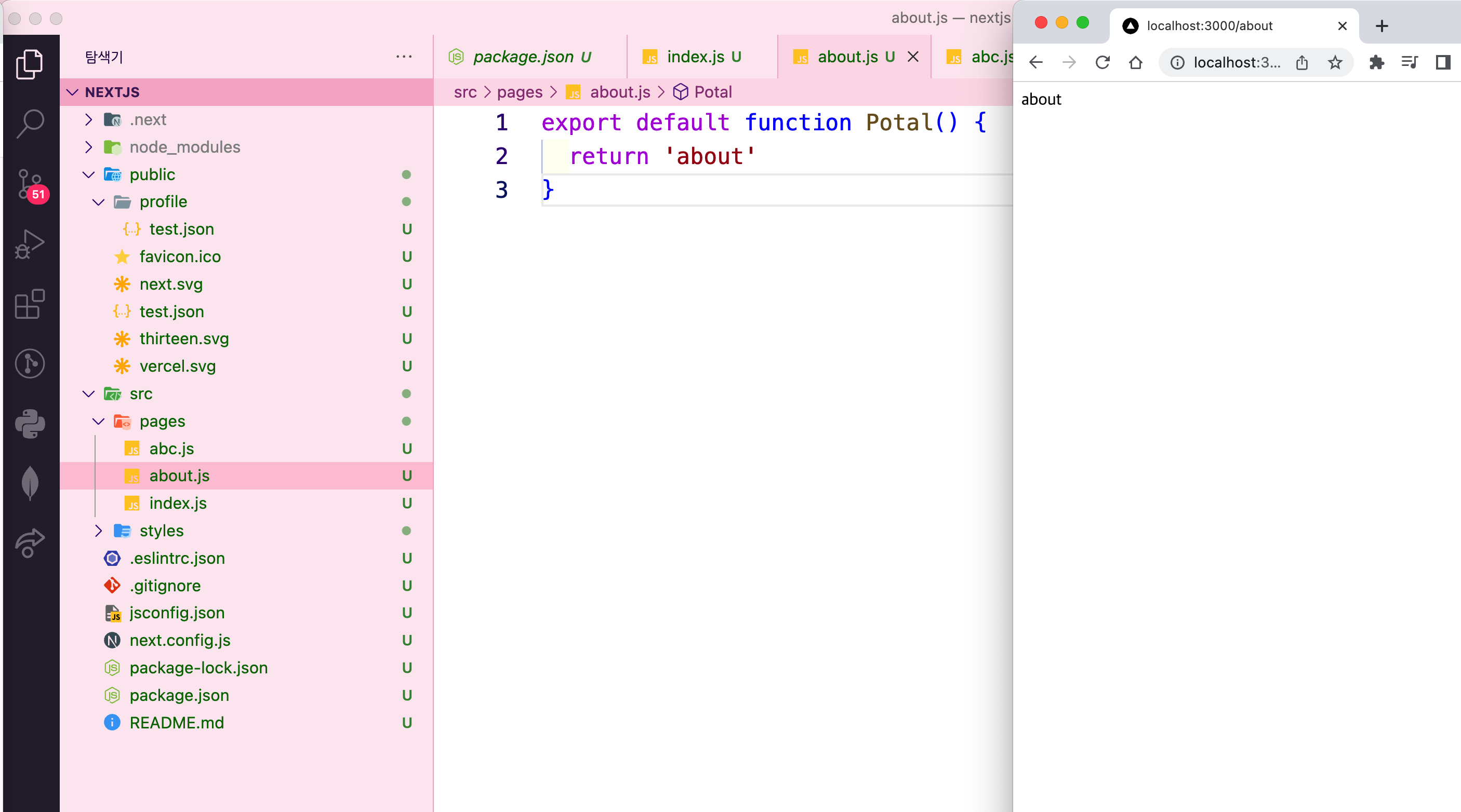 이렇게 about.js 파일을 pages 폴더 안에 만들어봤다.