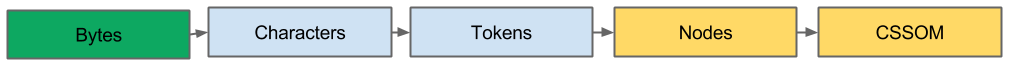https://bit.ly/2WochoN 1. 변환 : 브라우저가 HTML의 원시 바이트를 읽어와서 HTML에 정의된 인코딩(예: UTF-8)에 따라 개별 문자로 변환합니다.